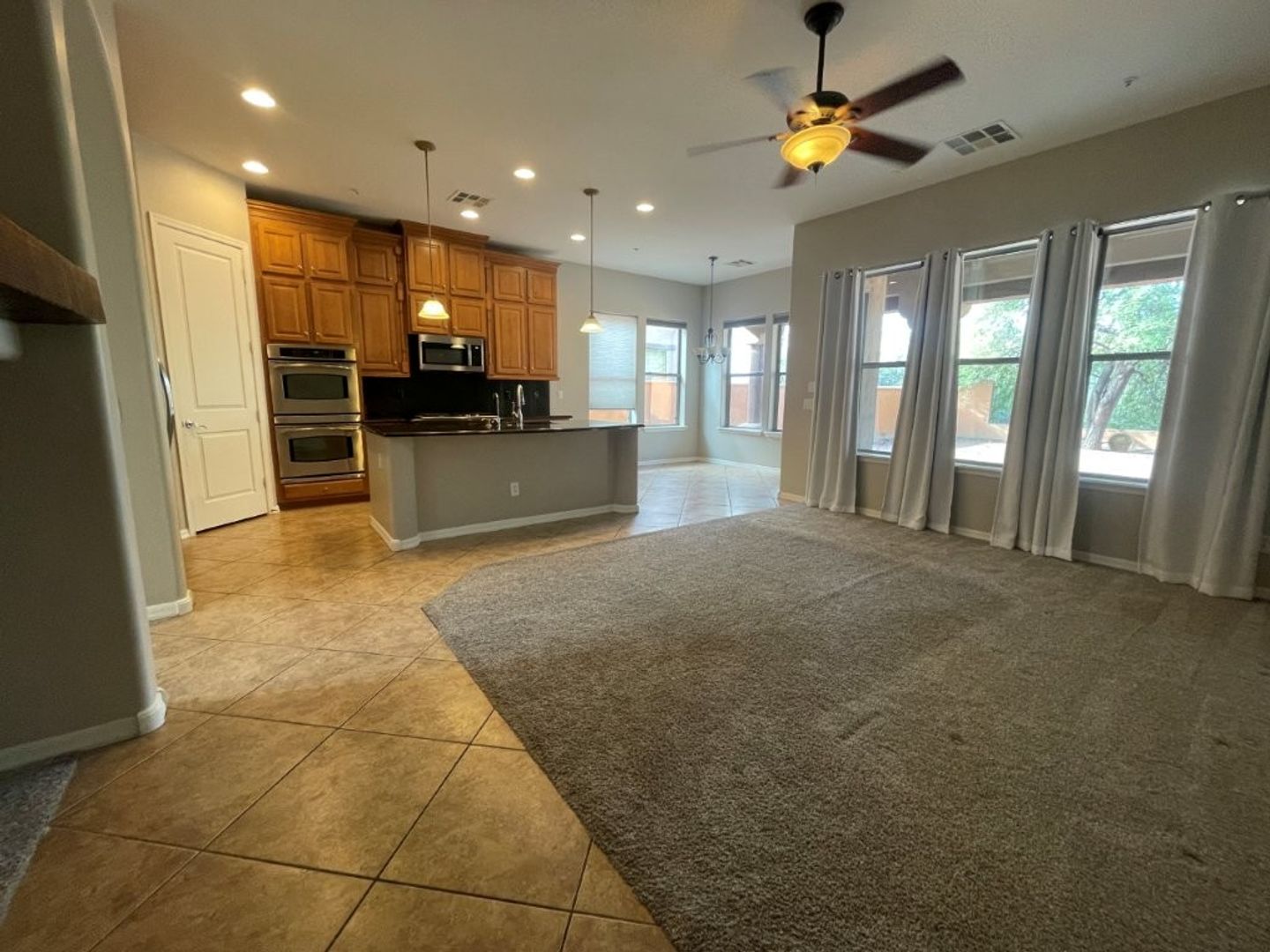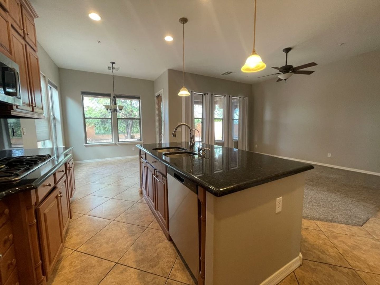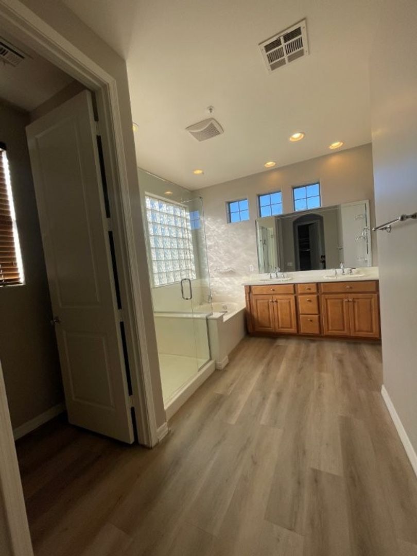 Prestigious Gated DC Ranch 5 BR, 3 BA home with 2 car garage. The kitchen has granite countertops and maple cabinets with nickel hardware. All Stainless kitchen appliances included, washer and dryer included. Kitchen island with breakfast bar. Breakfast nook/eat-in kitchen. Gas fireplace in family room. Formal dining area. Two BRs downstairs and 1 bath. Large master BR upstairs with balcony. Master bath has double sinks, garden tub and shower. Large, cedar lined walk-in closet, with closet organizer. Two other BRs upstairs, and a loft/bonus room. Ceiling fans and blinds throughout. Easy care backyard landscaping. Covered patio. View fence. Near shopping and dining. Call for pets!